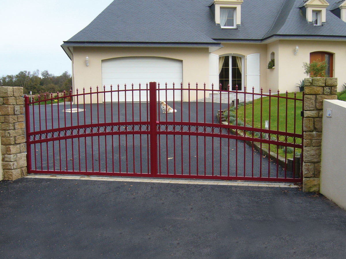 Le portail battant s’installe idéalement sur un terrain plat et permet une ouverture jusqu’à 180° afin d’optimiser le passage de la voiture.